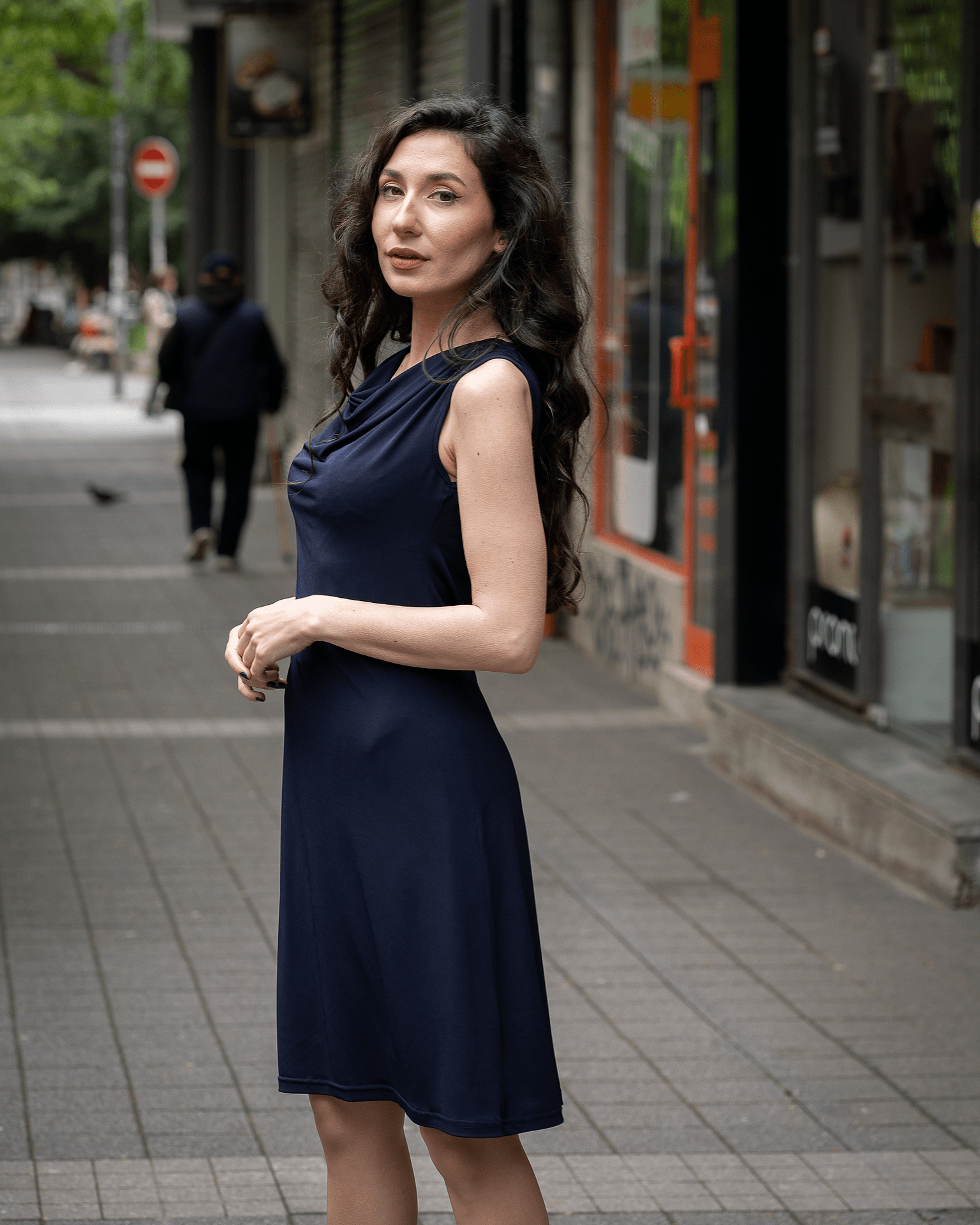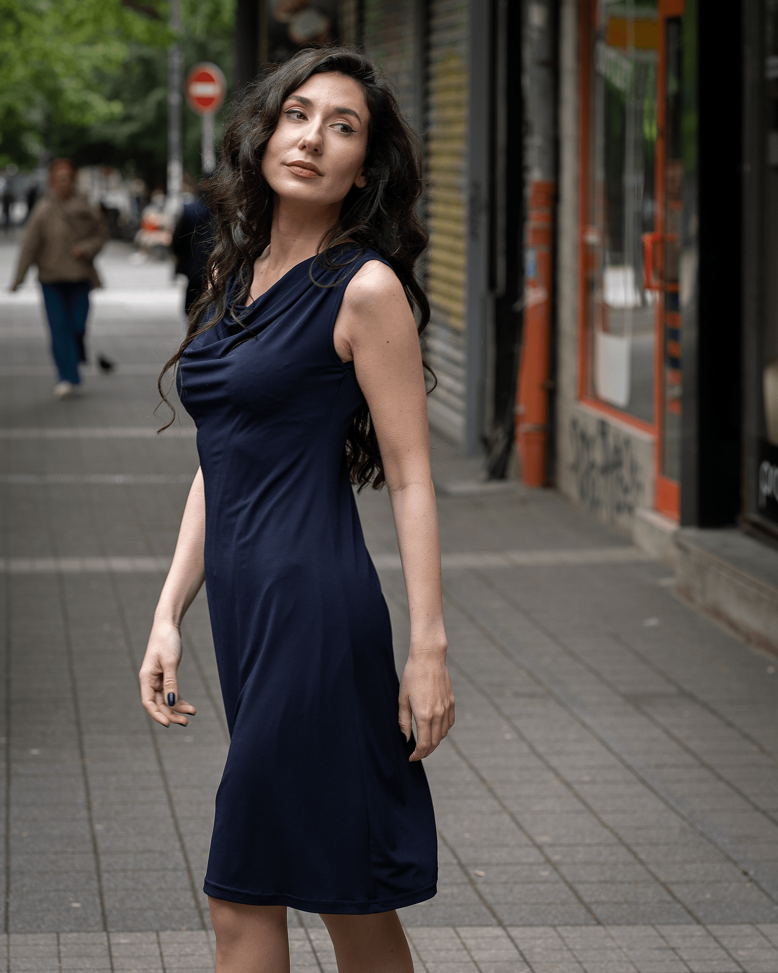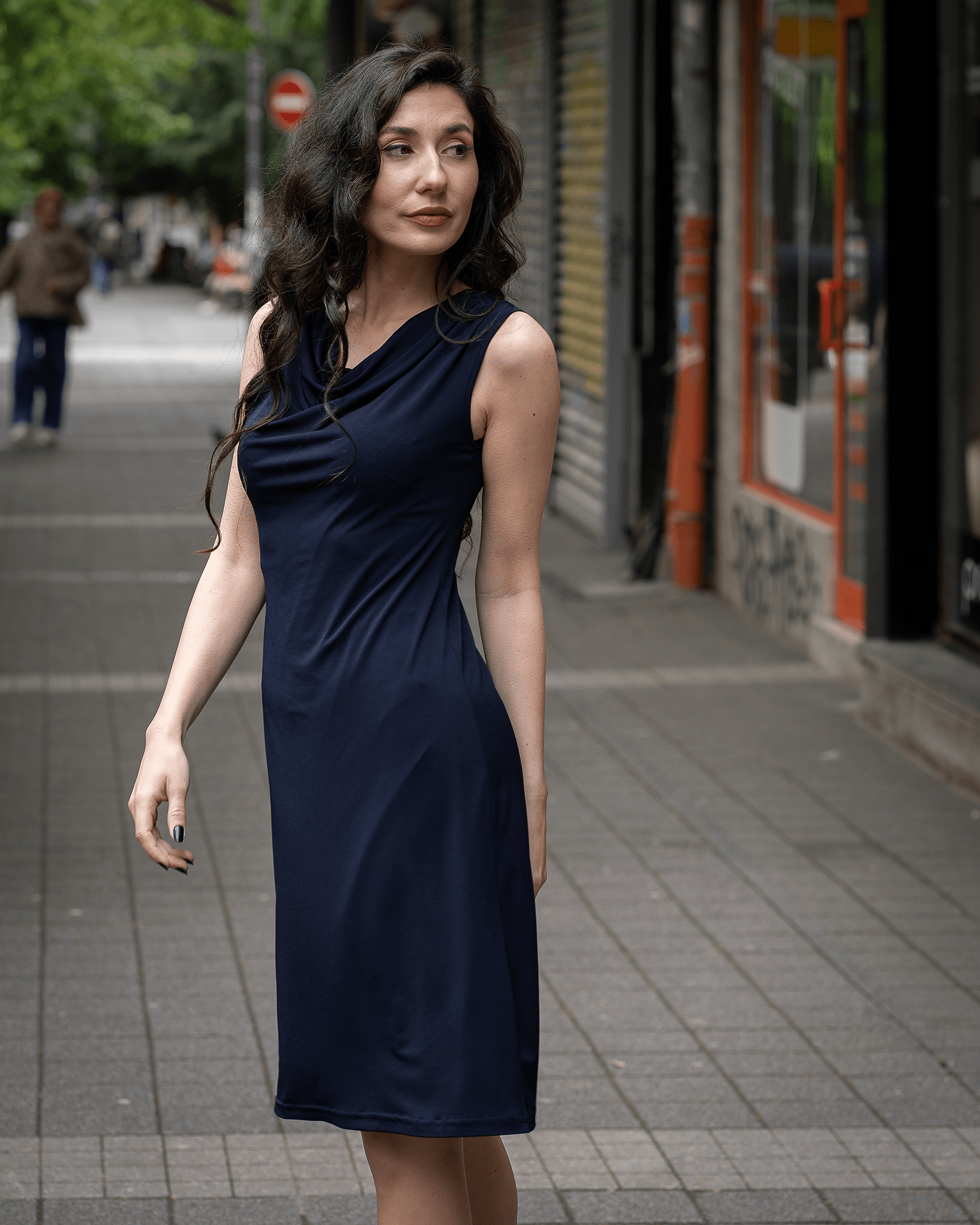 - Трикотажна рокля без ръкави, с „гръцко” деколте, модел 778-9.