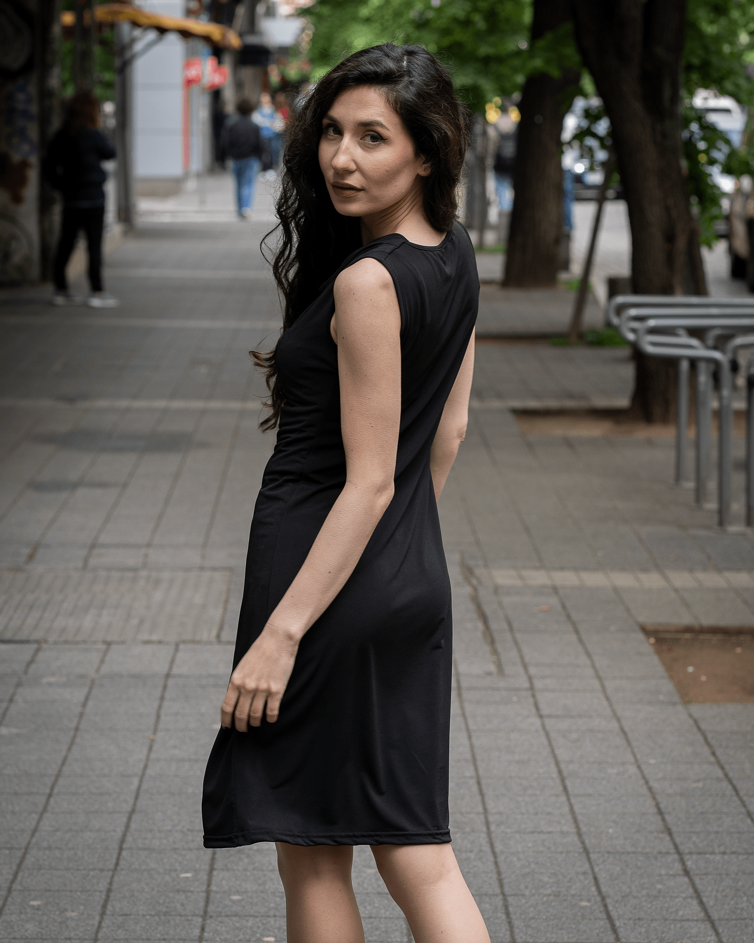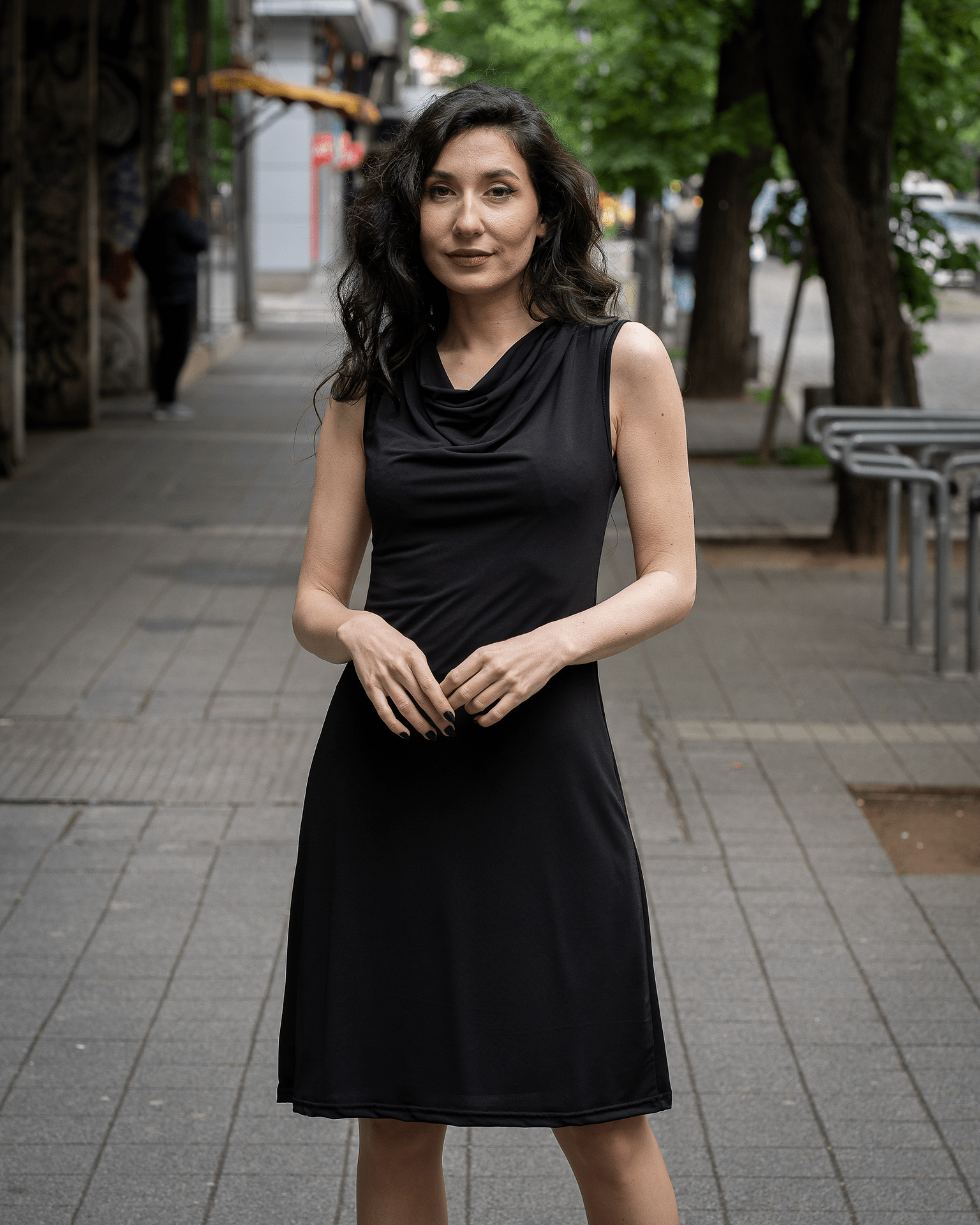 - Трикотажна рокля без ръкави, с „гръцко” деколте, модел 778-2