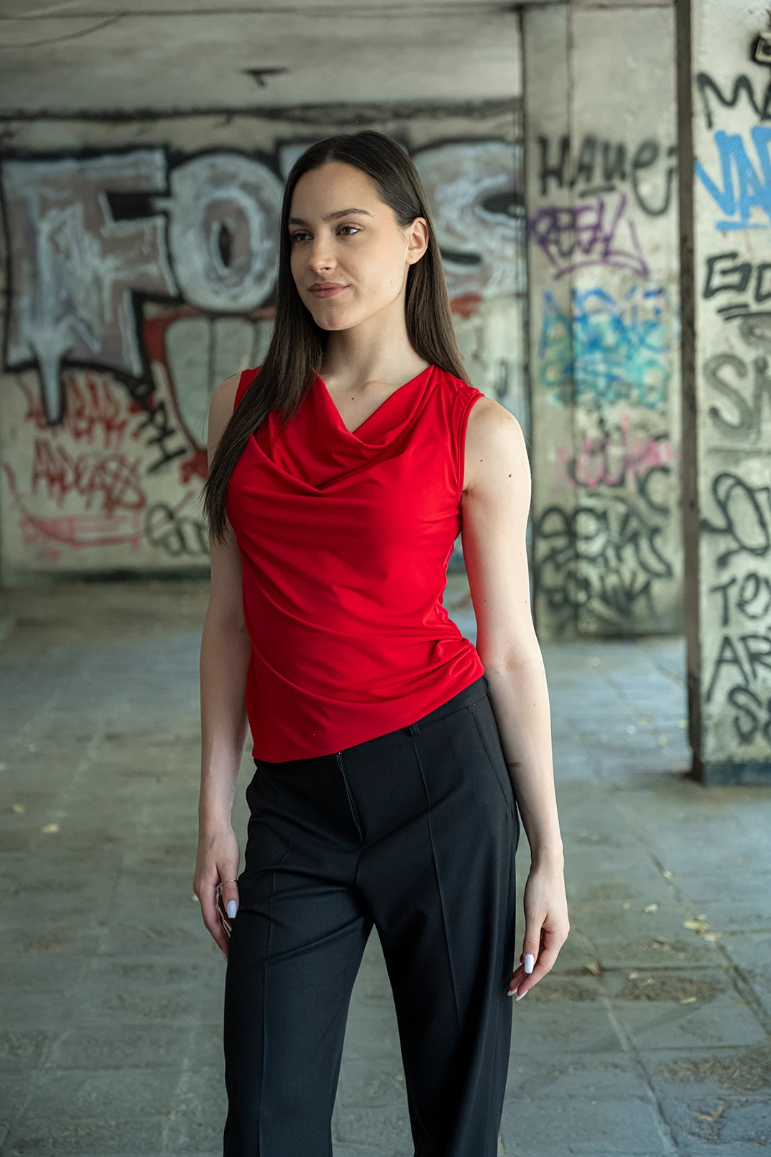 - Трикотажна блуза без ръкави, с „гръцко” деколте, модел 755-31.