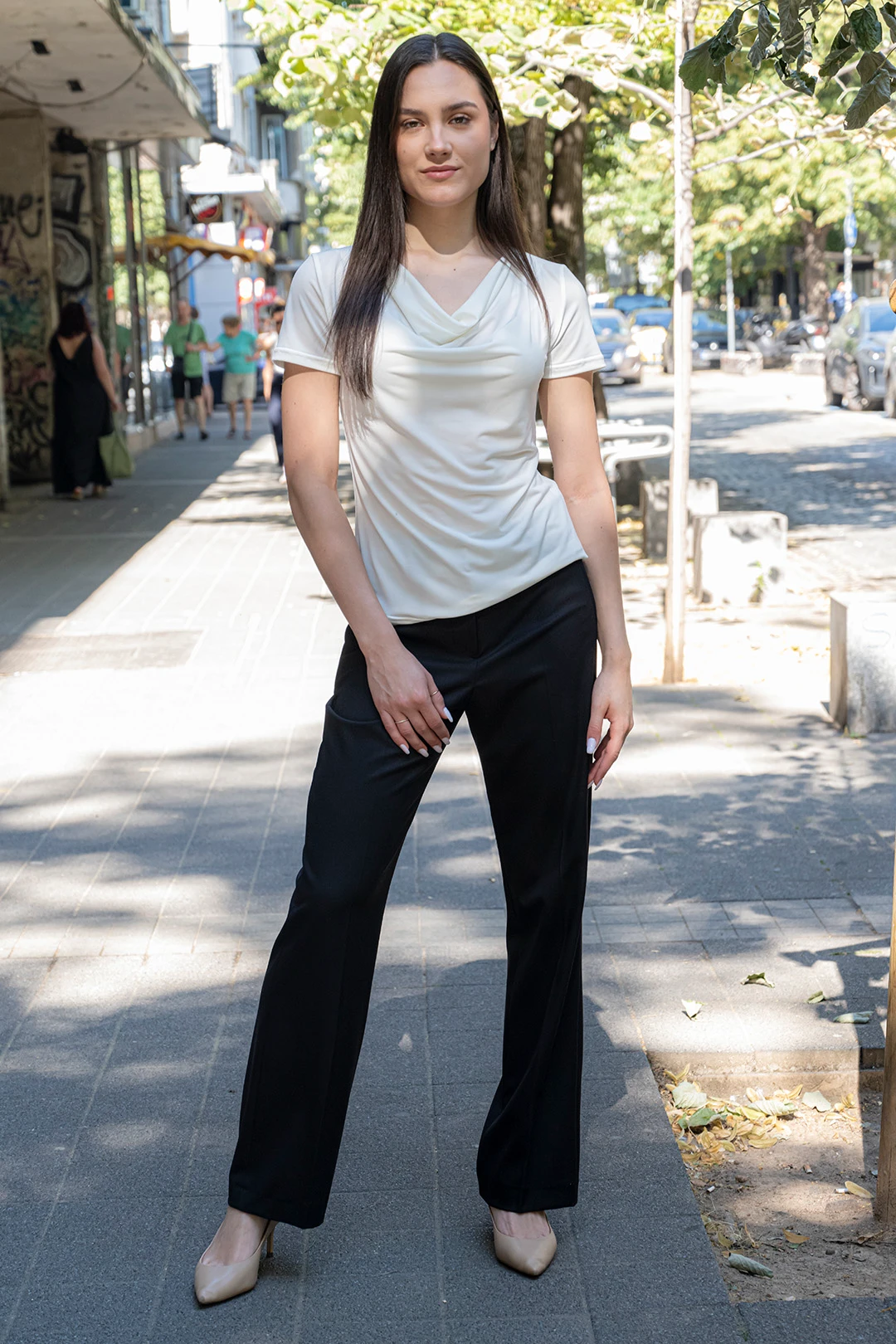 Трикотажна дамска блуза с къс ръкав и „гръцко” деколте
