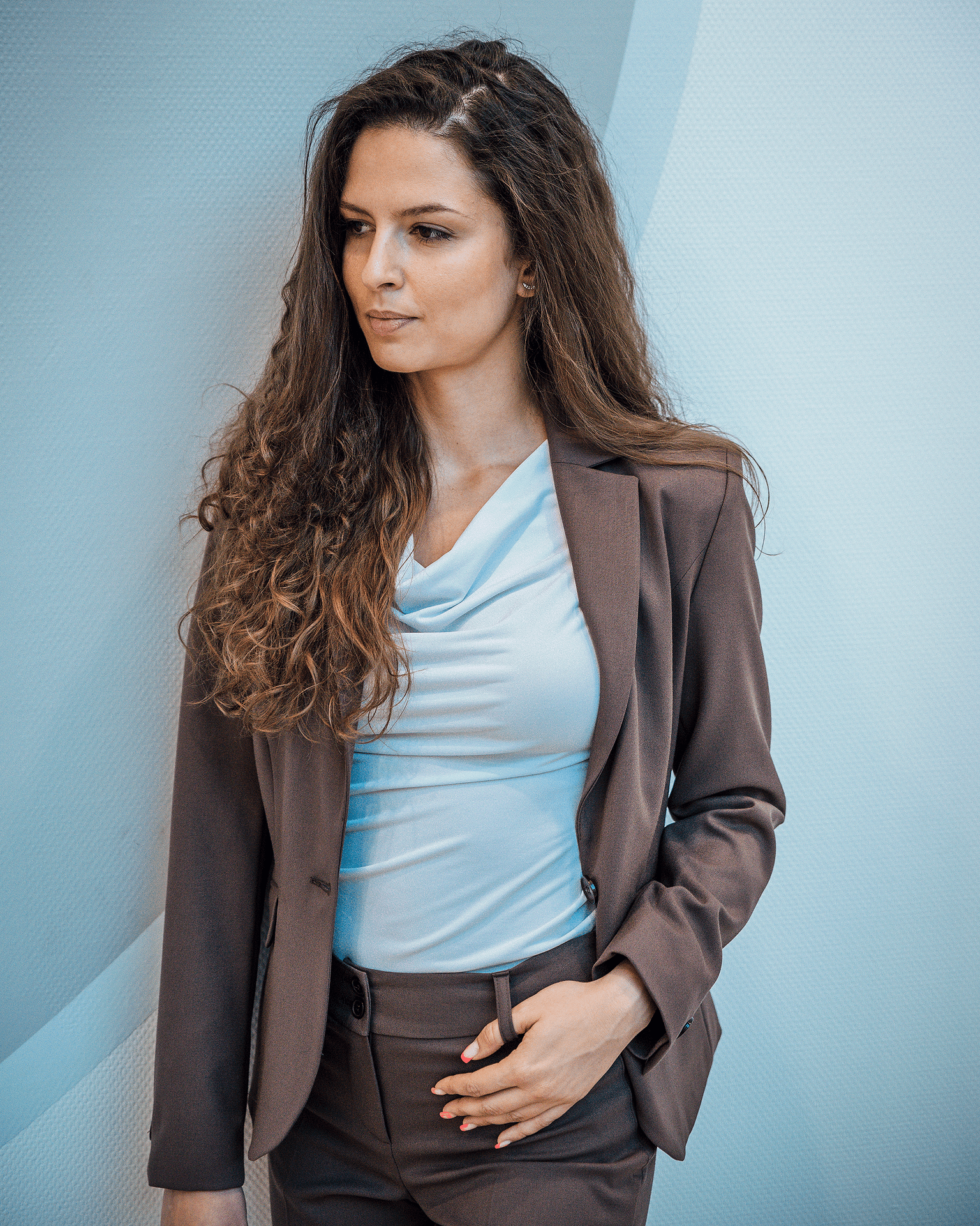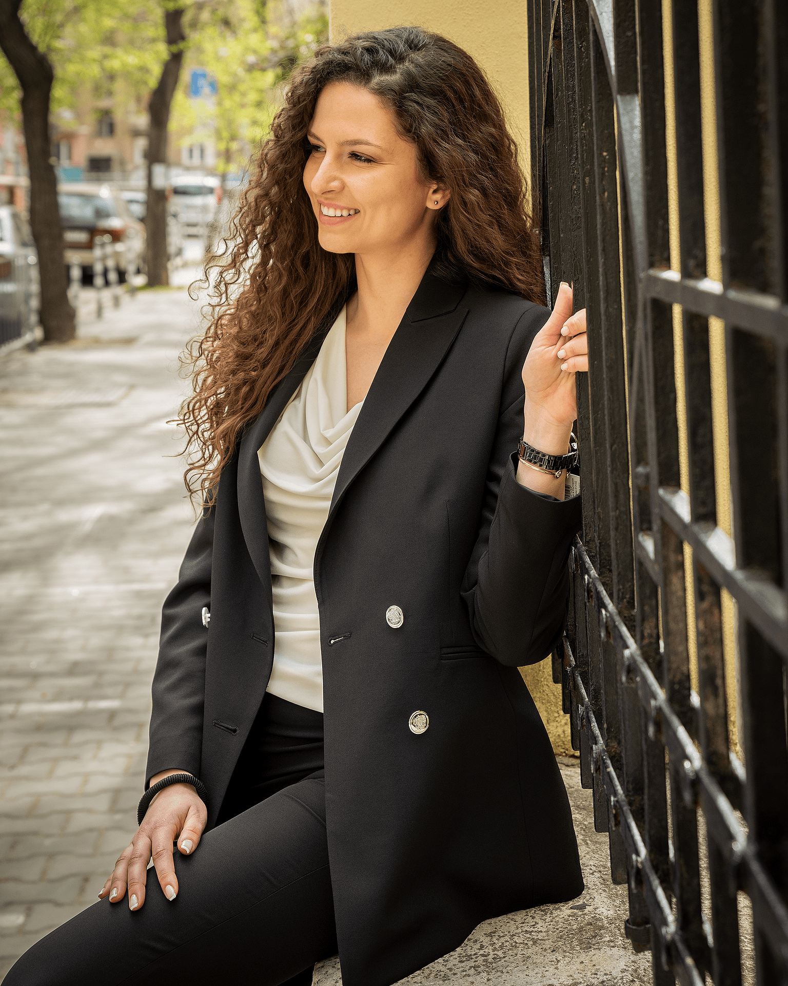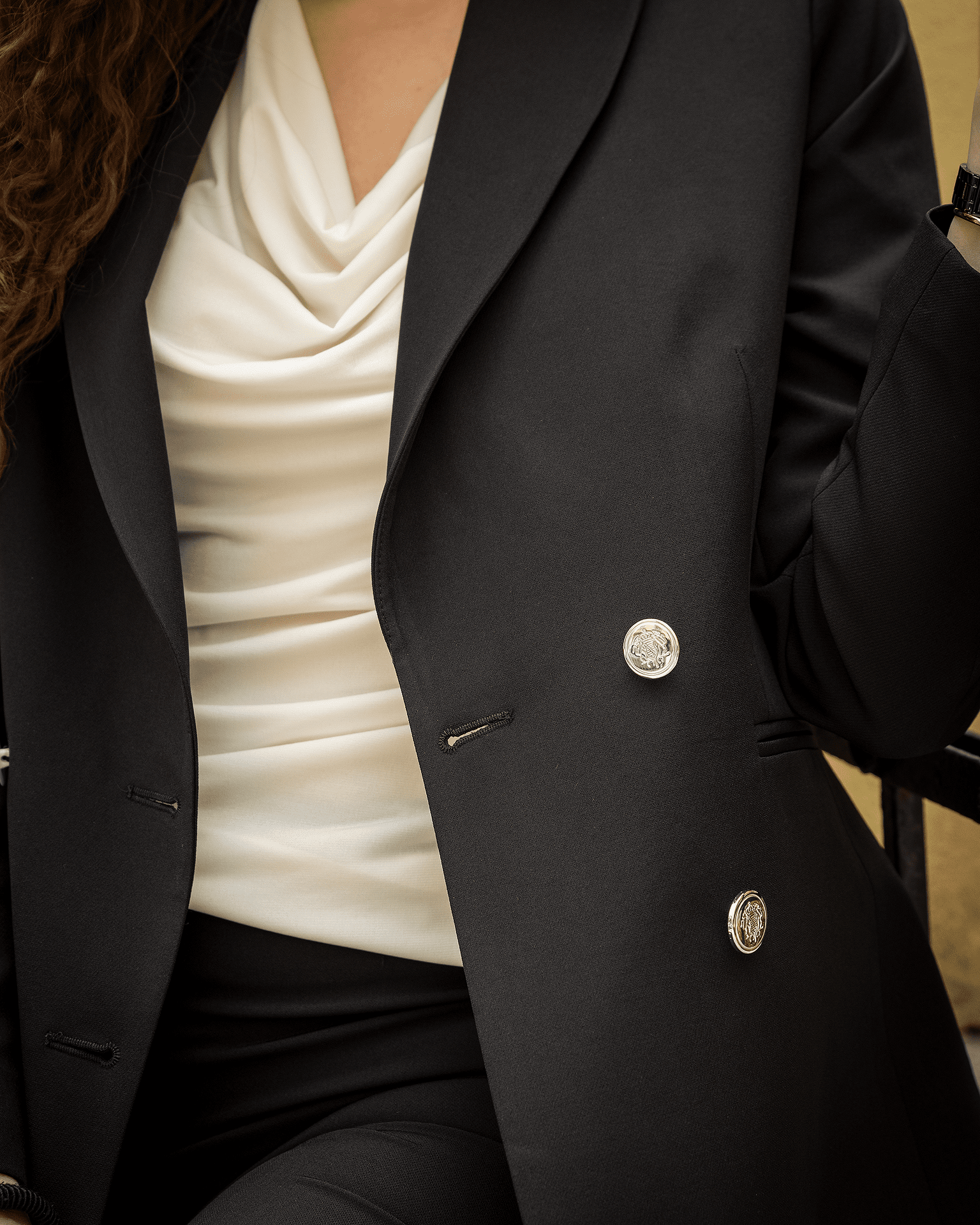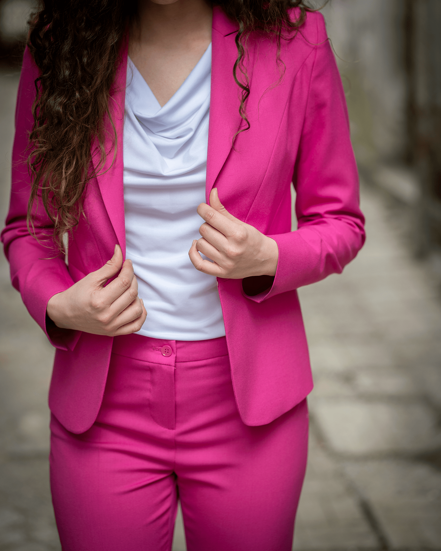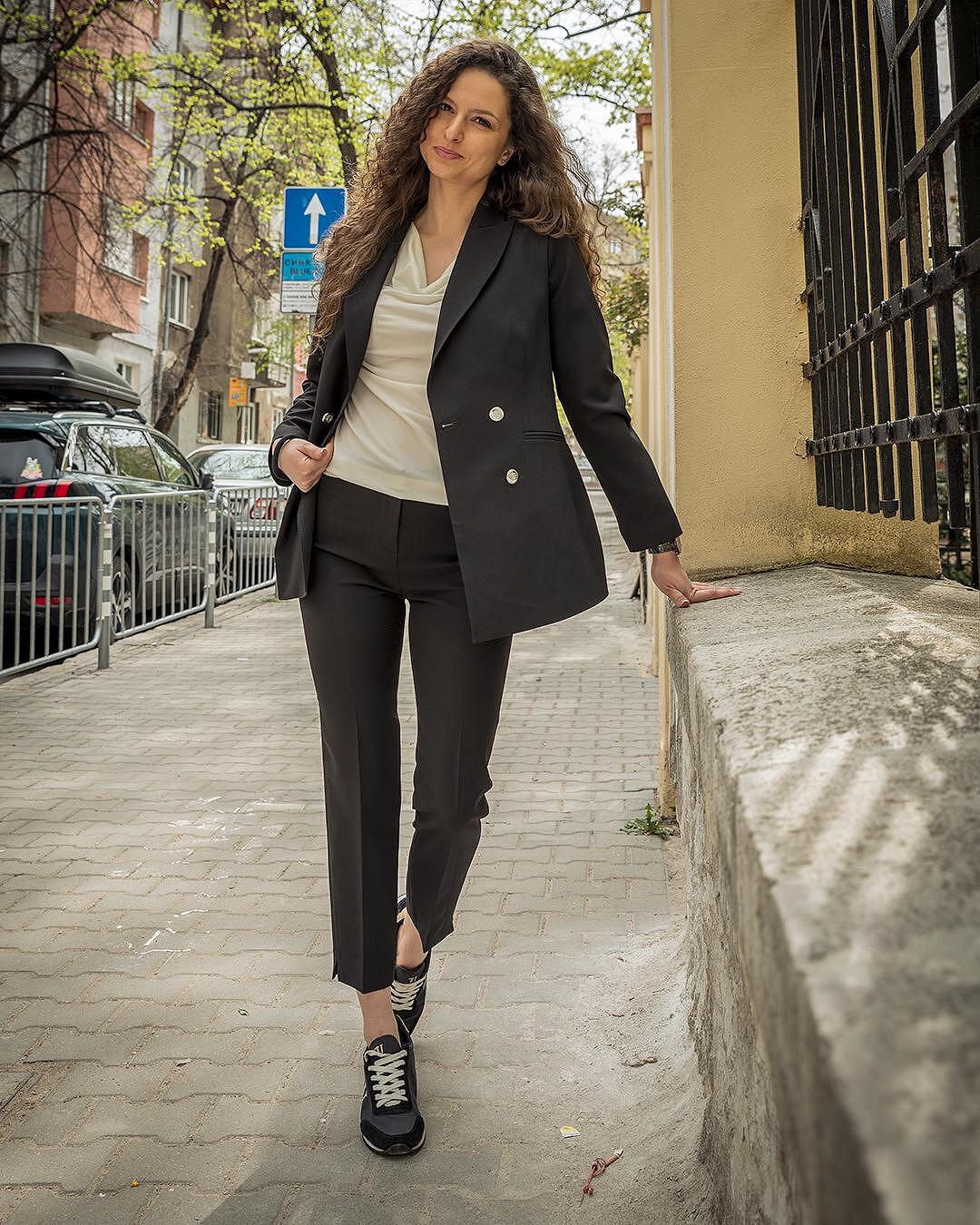 Дамски костюм от късо болеро без ревери и тесен дамски панталон