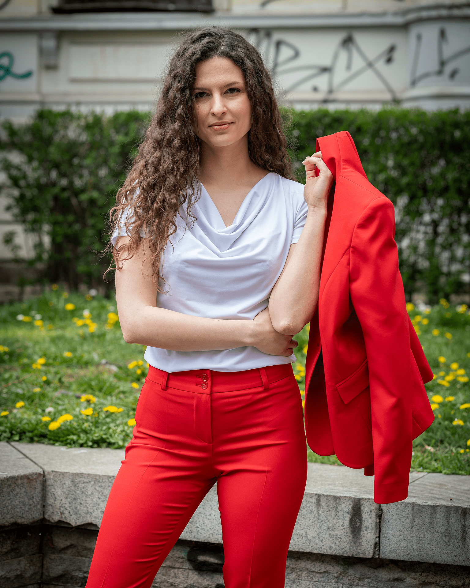 Материята е много хубава, мека и приятна на допир. Моделът може да се комбинира както с дънки, така и с панталон, пола или рокля.