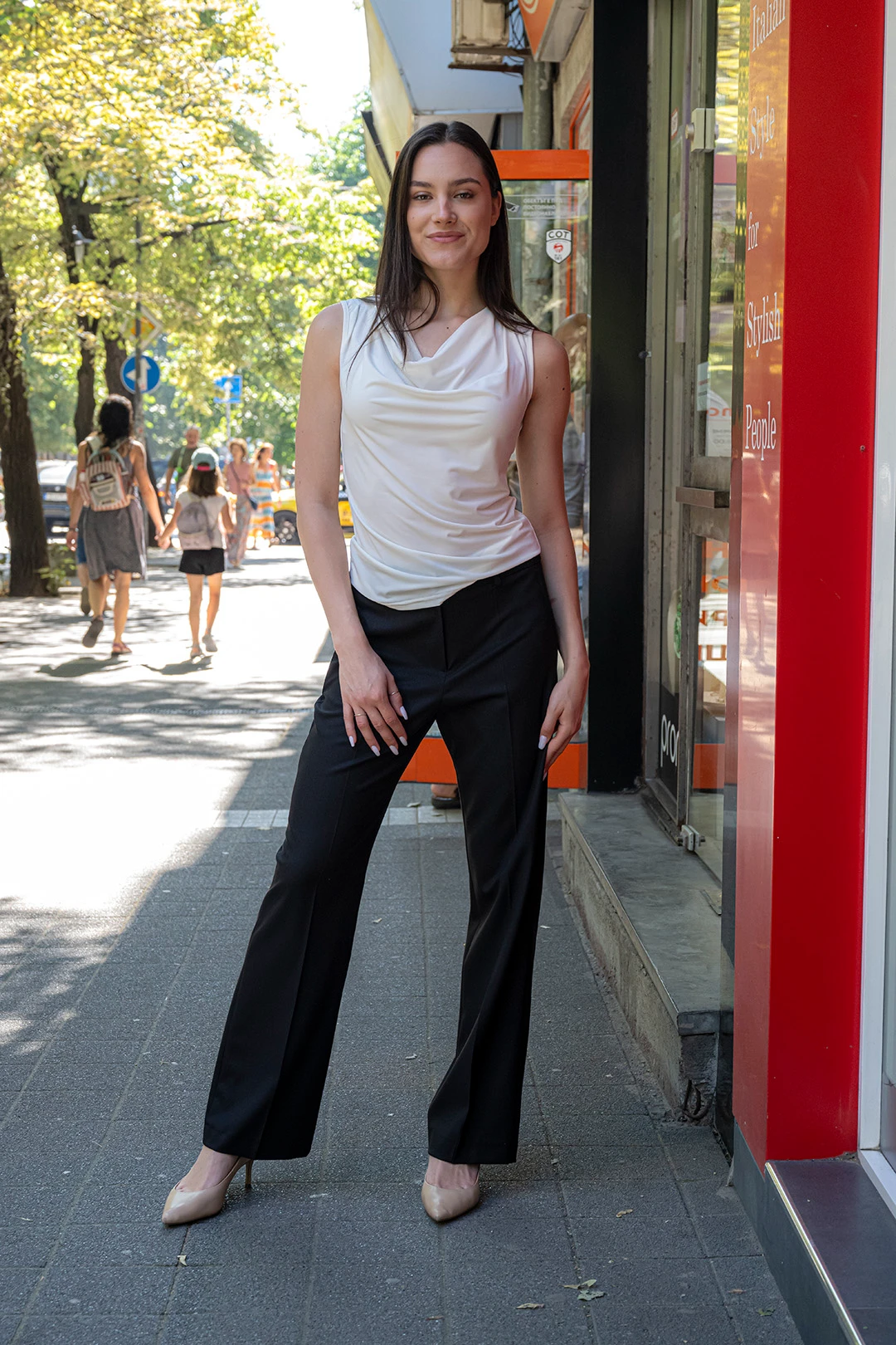 - Трикотажна дамска блуза без ръкави с „гръцко” деколте