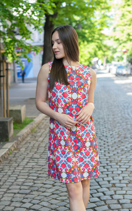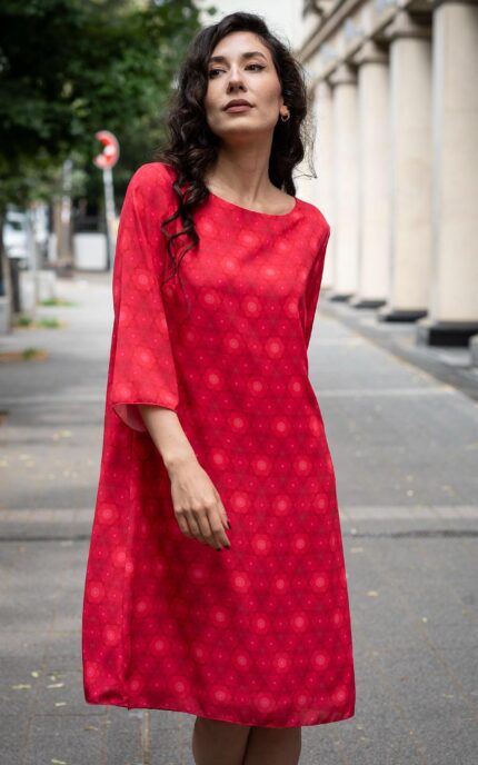 Роклята е изработена от висококачествена материя (97% полиестер и 3% еластан), която осигурява комфорт и лесна поддръжка, без да ограничава движенията. Хастарът от 100% полиестер гарантира отлична структура на дрехата и удобство при носене през целия ден.