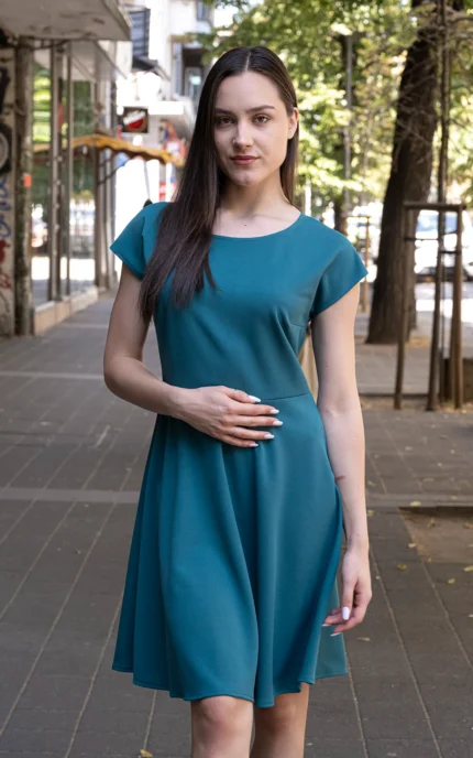 Тази вталена дамска рокля в цвят тъмна мента от Aleta Parizi е перфектният избор за жени, които търсят баланс между модерна визия и класическа елегантност. Наситеният и свеж ментов нюанс придава оригиналност, докато прецизната кройка подчертава силуета по нежен и стилен начин.