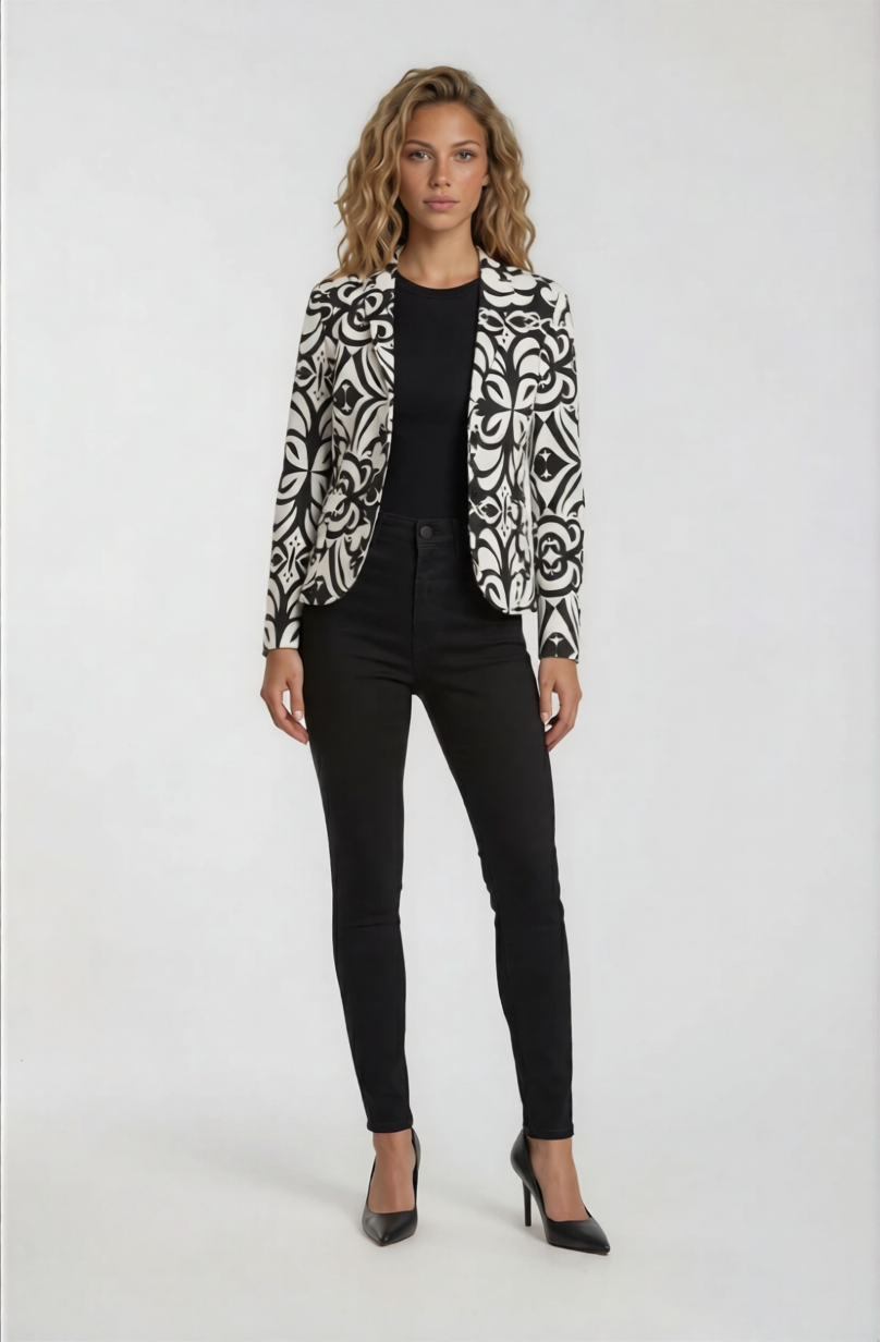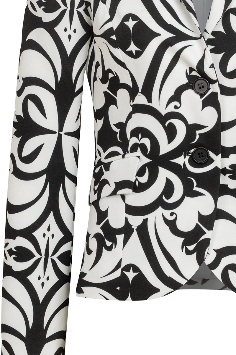 Дизайн: Модерна вталена кройка и скъсен силует, които придават младежко и актуално излъчване. Комбинацията в черно и бяло е вечна класика, която лесно се съчетава с дънки, спортни панталони или рокля.