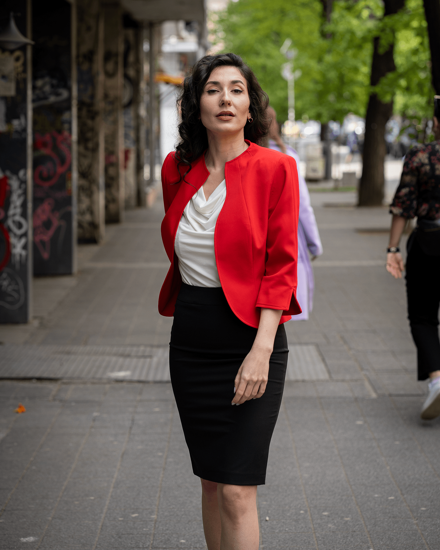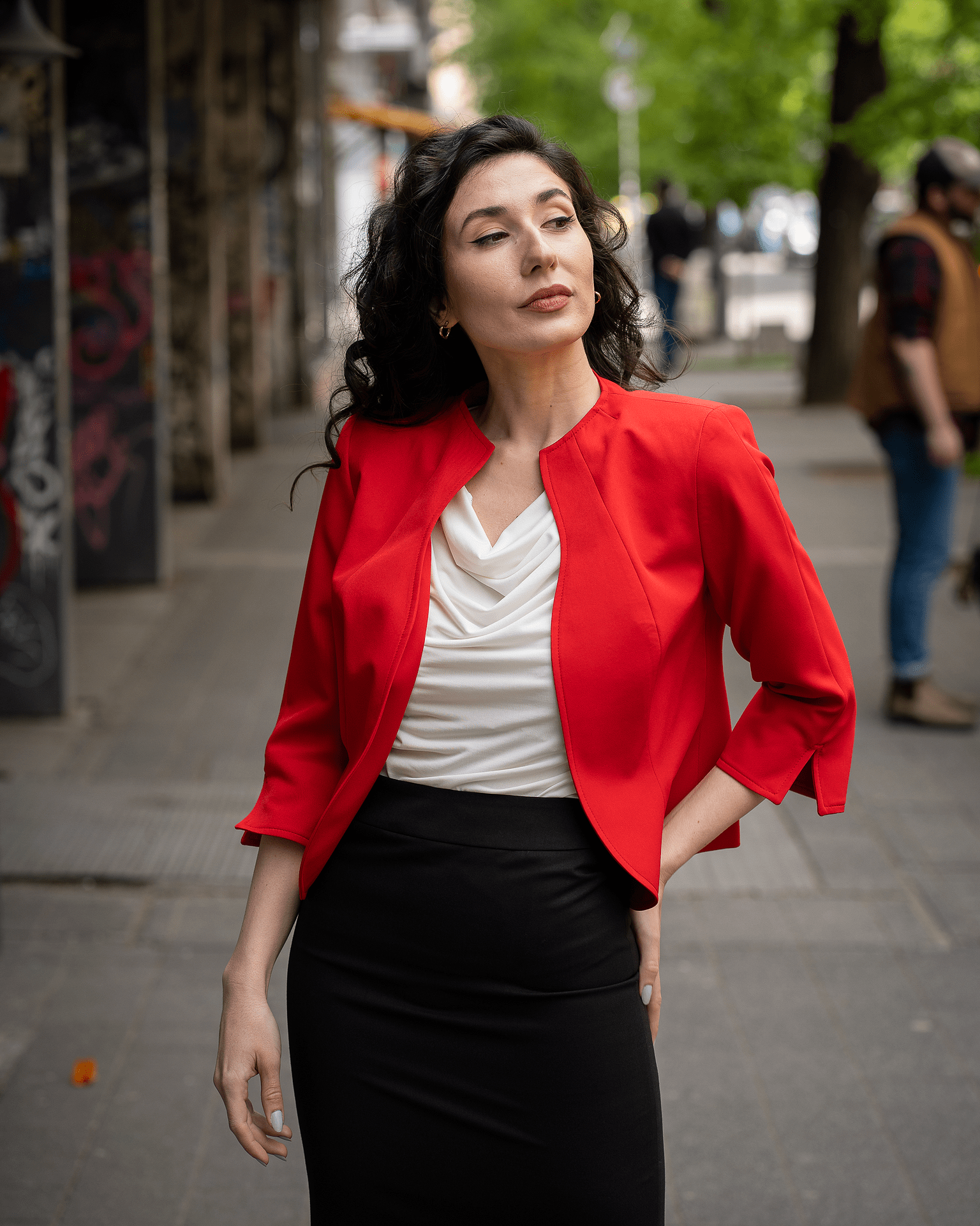 Дамско сако с остър ревер и срязване в талията