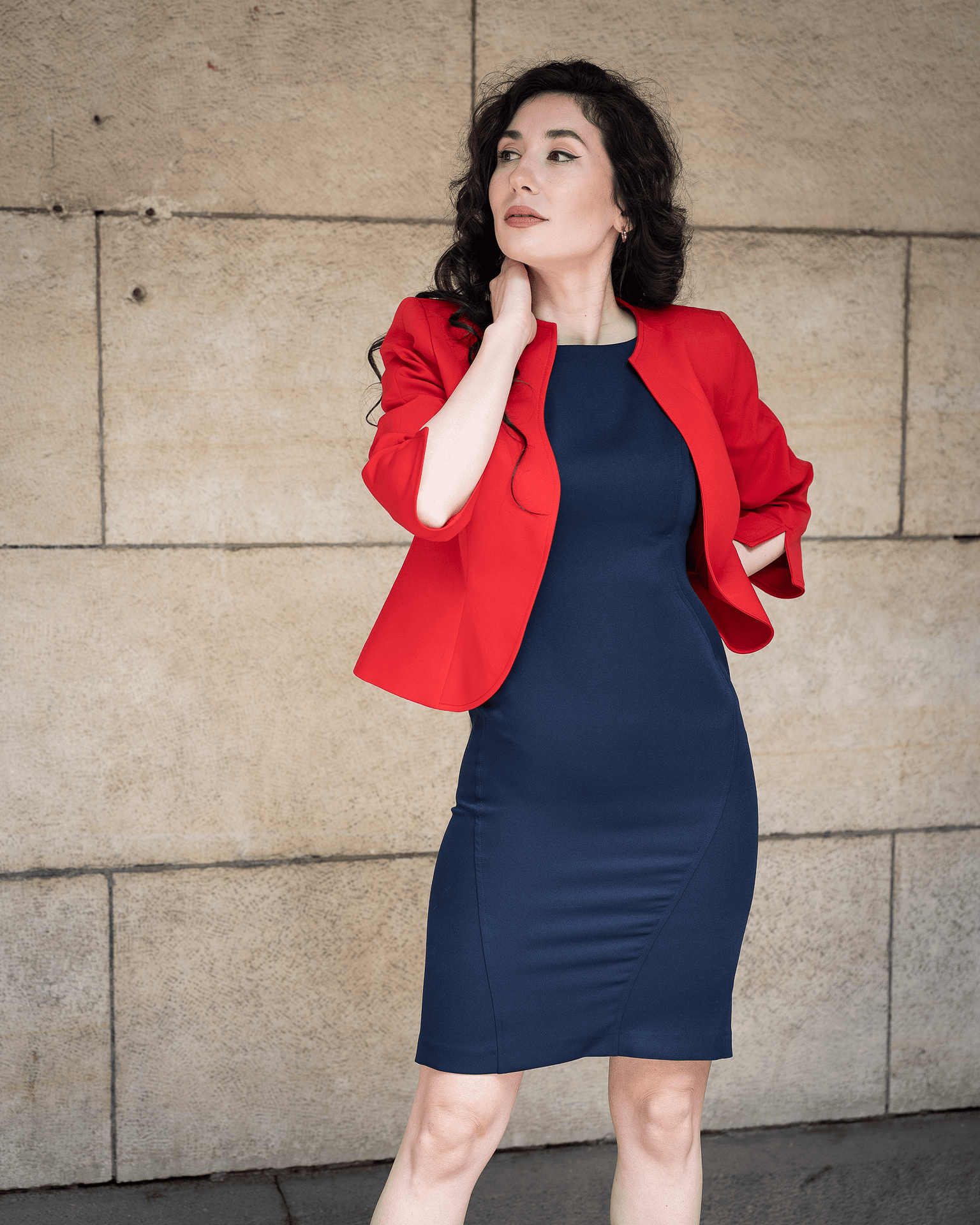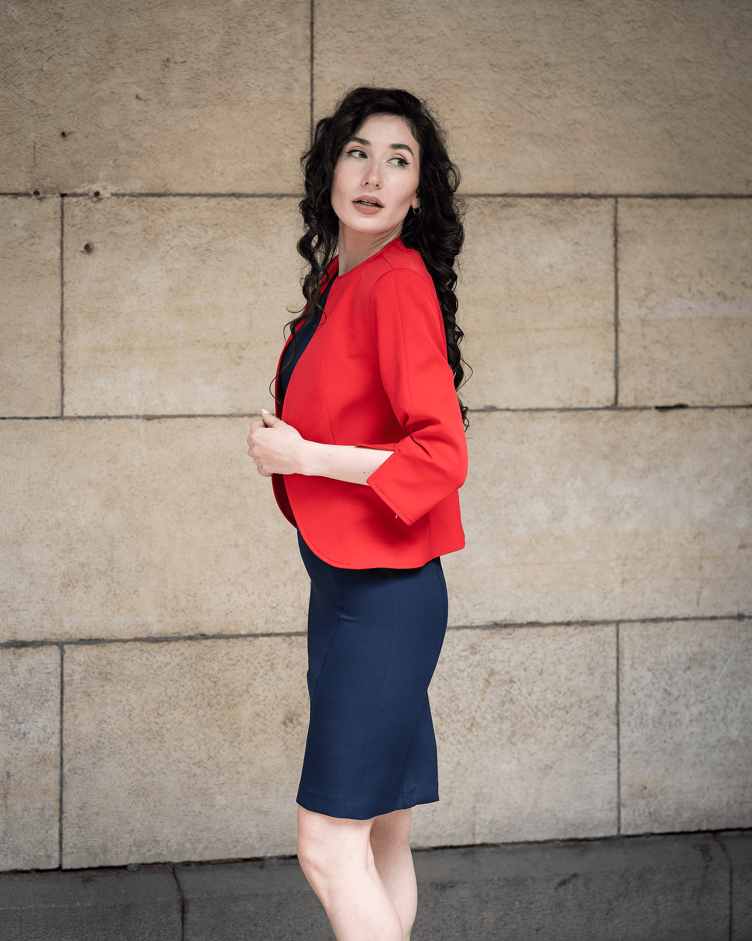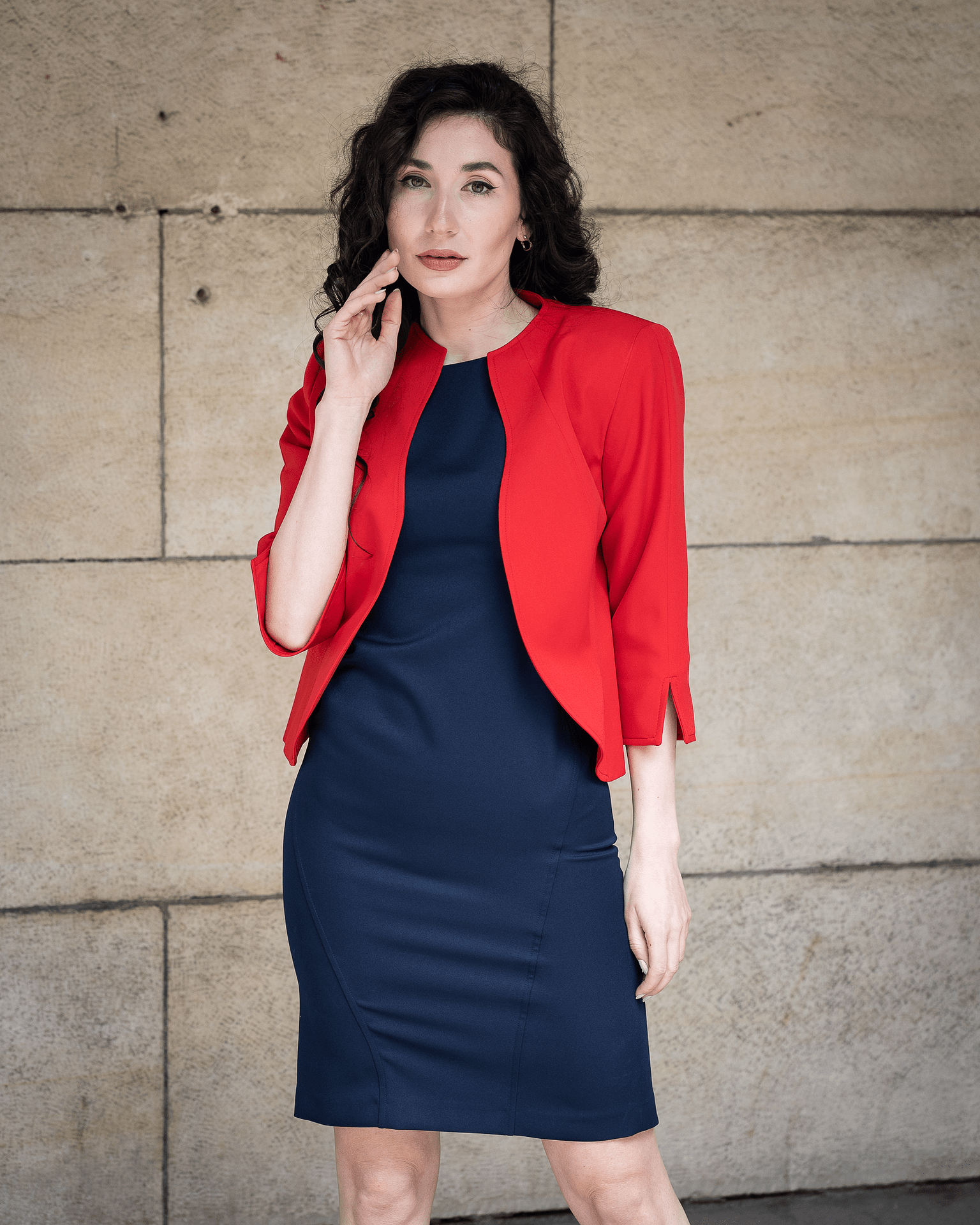 Късо болеро без ревери, тъмносиньо